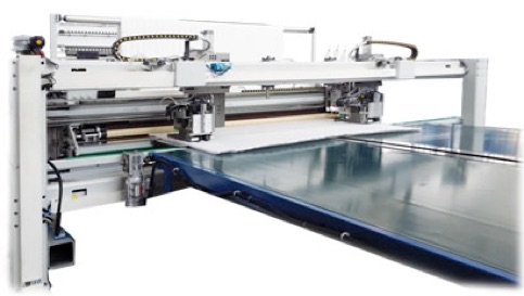 The main difference of this model from analogues on the market is the position of the side cutting-sewing heads after the cross cutting, which allows to change pannel sizes automatically without stops in production in quilting-hemming line.