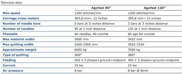 Double chain stitch technology permits to achieve a high speed of quilting and productivity that make of the quilter an indispensable element for big productions even 24 hours a day.